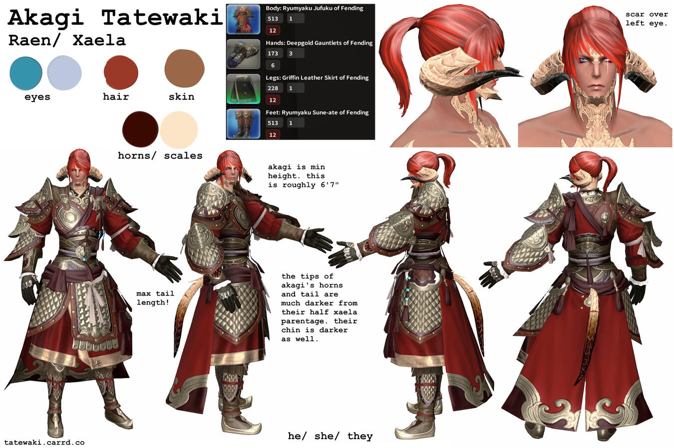 Born just outside Doma, Akagi was raised in relative solitude. With just themselves and their mother, early childhood made Akagi unsure, and clingy— but extremely curious. Eventually, after working up the nerve, they wandered into Doma, where they met a much younger Hien and Yugiri. They grew close, and dreamed of repelling the Garlean Empire that held their home in a choke hold. Their yearning was cut short, however, after their mother learned of their intent to join the resistance. The next morning they were on a boat headed to Eorzea, and— their mother thought— safely far away from the conflict at home.